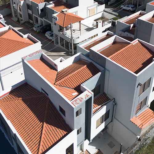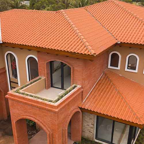 Es una combinación armoniosa de las formas curvas tradicionales de techos coloniales, con ajuste perfecto de las tejas de encastre que resulta en un acabado de gran belleza.
